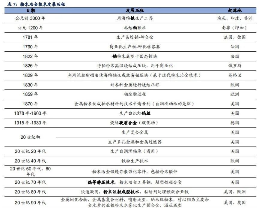 粉末冶金作為一種既古老又充滿活力的先進(jìn)材料制備和成形技術(shù),起源于古代陶瓷制備 技術(shù)和煉鐵技術(shù),為人類(lèi)社會(huì)的發(fā)展做出了重要貢獻(xiàn)。據(jù)《粉末冶金原理》,18世紀(jì)中葉,粉末冶金制鉑技術(shù)在歐洲的興起,開(kāi)啟了古老粉末冶金技術(shù)的復(fù)興時(shí)代。直至1909年,粉末冶金法延性鎢的問(wèn)世標(biāo)志著近現(xiàn)代粉末冶金時(shí)代的來(lái)臨。隨著技術(shù)的發(fā)展和產(chǎn)品需求的提高,20世紀(jì)70 年代粉末注射成型工藝出現(xiàn),20世紀(jì)90年代末金屬增材制造技術(shù)得以研究和發(fā)展,粉末冶金技術(shù)的飛速發(fā)展為整個(gè)工業(yè)界帶來(lái)了巨大的變革。100多年來(lái),粉末冶金技術(shù)蓬勃發(fā)展,各種重要新型材料和關(guān)鍵性制品不斷涌現(xiàn), 成為當(dāng)今國(guó)民經(jīng)濟(jì)和科學(xué)技術(shù)不可或缺的重要工程技術(shù)之一。