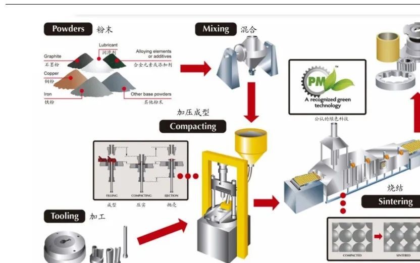 粉末冶金是最先進(jìn)的金屬成形工藝粉末冶金技術(shù)是將金屬粉末制成復(fù)合材料以及各種類(lèi)型制品的核心技術(shù)工藝,其將金屬 粉末或者復(fù)合粉末作為原材料,經(jīng)過(guò)成型和燒結(jié)等工藝加工成金屬制品。作為一門(mén)新興的材料制備技術(shù),粉末冶金技術(shù)能耗低,具備近凈成型的優(yōu)勢(shì),材料利用率高達(dá)95%, 是最先進(jìn)的金屬成形工藝。
