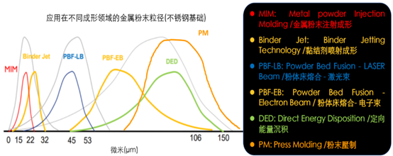 金屬粉末成形技術(shù)在發(fā)展數(shù)千年的歷史之后(最早在古埃及發(fā)現(xiàn)氧化鐵燒制的金屬制品,紀(jì)元前3000年),但是要談到大量制造還是在19世紀(jì)初的50年代開始,然而愛(ài)迪生發(fā)明電燈促使了粉末冶金(Powder Metallurgy, PM)的工業(yè)進(jìn)步 – 鎢燈絲的制作已經(jīng)是20世紀(jì)之初(1909年),隨后鐵與銅金屬的粉末壓制與燒結(jié)(Press and sinter)便隨工業(yè)革命的帶動(dòng)迅速取代傳統(tǒng)金屬加工的方法,尤其是在鑄造和鍛造的齒輪件;在近代約50年前(1960-1970年),金屬粉末成形技術(shù)迎來(lái)了兩個(gè)重要的年輕成員,金屬粉末注射成形(Metal – powder Injection Molding)與金屬增材制造(Metal Additive Manufacturing),更是成為人類有史以來(lái)最頂尖的大量金屬零件制造工藝。請(qǐng)隨Dr. Q的隨后說(shuō)明來(lái)了解這三個(gè)當(dāng)代主流金屬粉末成形技術(shù)。最重要結(jié)論l金屬粉末成形技術(shù)的核心是粉末科學(xué),這是重中之重;l粉末壓制與燒結(jié)法(PM),成形過(guò)程的潤(rùn)滑劑(成形助劑)不超過(guò)3wt%,燒結(jié)后零件密度在85-95%相對(duì)密度、表面沒(méi)有致密層、幾何形狀為2-2.5D的大批量制品,適合單筆訂單大于10萬(wàn)件的月產(chǎn)能;l傳統(tǒng)壓制成形的粉末硬度低必須具有塑性變形能力,較硬質(zhì)粉末與硬質(zhì)合金的粉末冶金需要的成形助劑含量較高,因此也需要長(zhǎng)時(shí)間的脫脂;l金屬粉末注射成形(MIM),因?yàn)榉勰┘?xì)小導(dǎo)致黏結(jié)劑(成形助劑>6wt%)較多,燒結(jié)后零件密度大于98%相對(duì)度、表面形成致密層、幾何形狀為3D的批量制品,適合單筆訂單大于1萬(wàn)件的月產(chǎn)能;l金屬增材制造(MAM),燒結(jié)后零件密度大于98%相對(duì)密度、表面沒(méi)有致密層、幾何形狀為3D的少量制品,適合1~1000件以內(nèi)的月產(chǎn)能。成形助劑根據(jù)MAM工藝不同而有區(qū)別。1.對(duì)于PM/MIM/MAM所使用的粉末可不可以共享?為什么?答:如圖1所表示,三大主流金屬粉末成形技術(shù)使用的粉末粒徑分布,其中PM最粗大、MIM最細(xì)小,增材制造則居中(包含圖中的Binder Jet, PBF-LB, PBF-EB, and DED)。