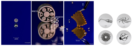MIM制品的樣品展示(Dr. Q的MIM樣品盒)4.3 MAM制品圖7為MAM的最新微米級(jí)3D打印(資料提供系由江蘇云耀深維科技有限公司www.aixway3d.cn),這是地表上最精細(xì)的SLM打印制品以及工藝。其他大型件我們就省略不談,增材制造的制程能力已經(jīng)迅速追趕PM/MIM並大幅度的超越(只需要一部打印機(jī)便可以取代亢長(zhǎng)的製造程序)。
